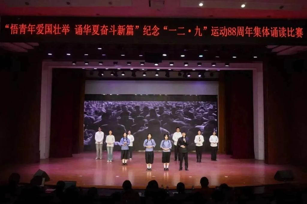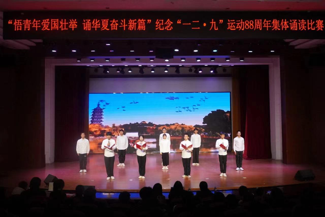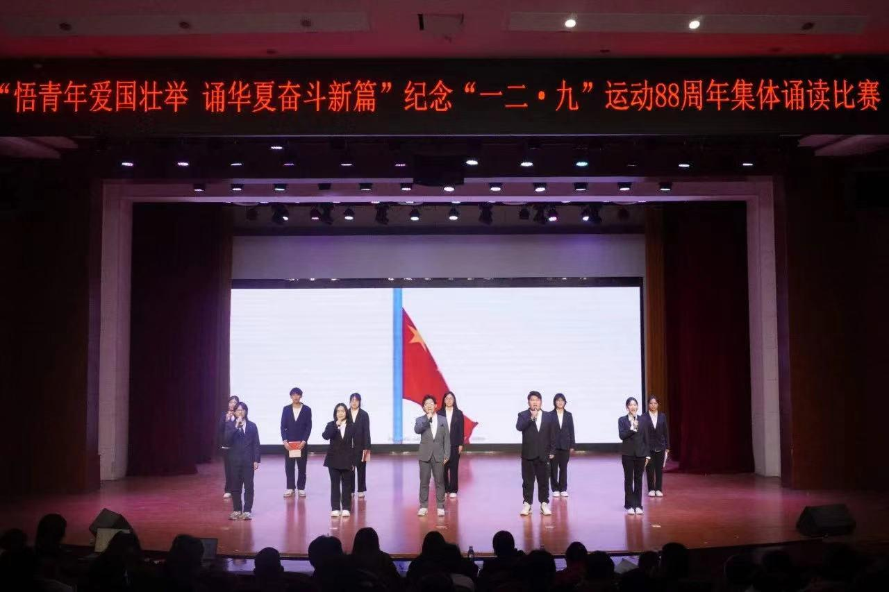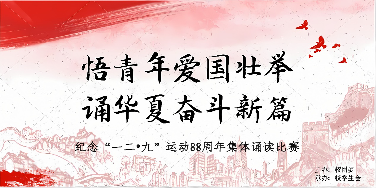 为纪念“一二·九”运动,大力弘扬以爱国主义为核心的民族精神,进一步激发青年学生爱党爱国、爱校荣校热情,引导青年学生坚定理想信念,传承红色基因,青春建功新时代,12月6日,由校团委主办,校学生会承办的“悟青年爱国壮举,诵华夏奋斗新篇”纪念“一二·九”运动88周年集体诵读比赛在畿辅文化会堂举行。