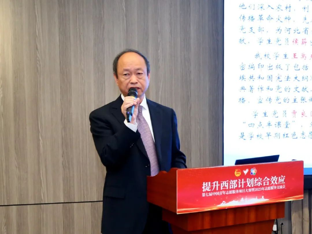 我校党委书记胡连利以《践行习近平总书记回信要求 让青春之花绽放在祖国最需要的地方》为题在“提升西部计划综合效应”重点交流会上作典型发言。他从“传承红色基因,培树重大典型,发挥示范引领作用”“践行习近平总书记回信要求,构建‘服务西部、扎根基层’全链条人才培育机制”“创新实践路径、教育引擎,推进服务西部新征程”三个层面深入阐释了我校积极构建服务西部、扎根基层人才培育机制的做法与思考。胡连利强调,习近平总书记的回信是对保定学院西部支教毕业生群体的政治肯定,更是对西部支教传承者们的精神指引。9年来,保定学院党委以落实习近平总书记回信要求为政治遵循,坚定育人方向,师生共学共进,夯实“五项工程”,引领激励青年大学生到基层和人民中建功立业,不断拓展“服务西部”新途径,建设“西部支教”德育共同体,激发接续奋斗新动力。保定学院将坚持以习近平新时代中国特色社会主义思想为指导,以落实本次志交会精神为契机,坚定不移扎实做好新时代服务西部工作。