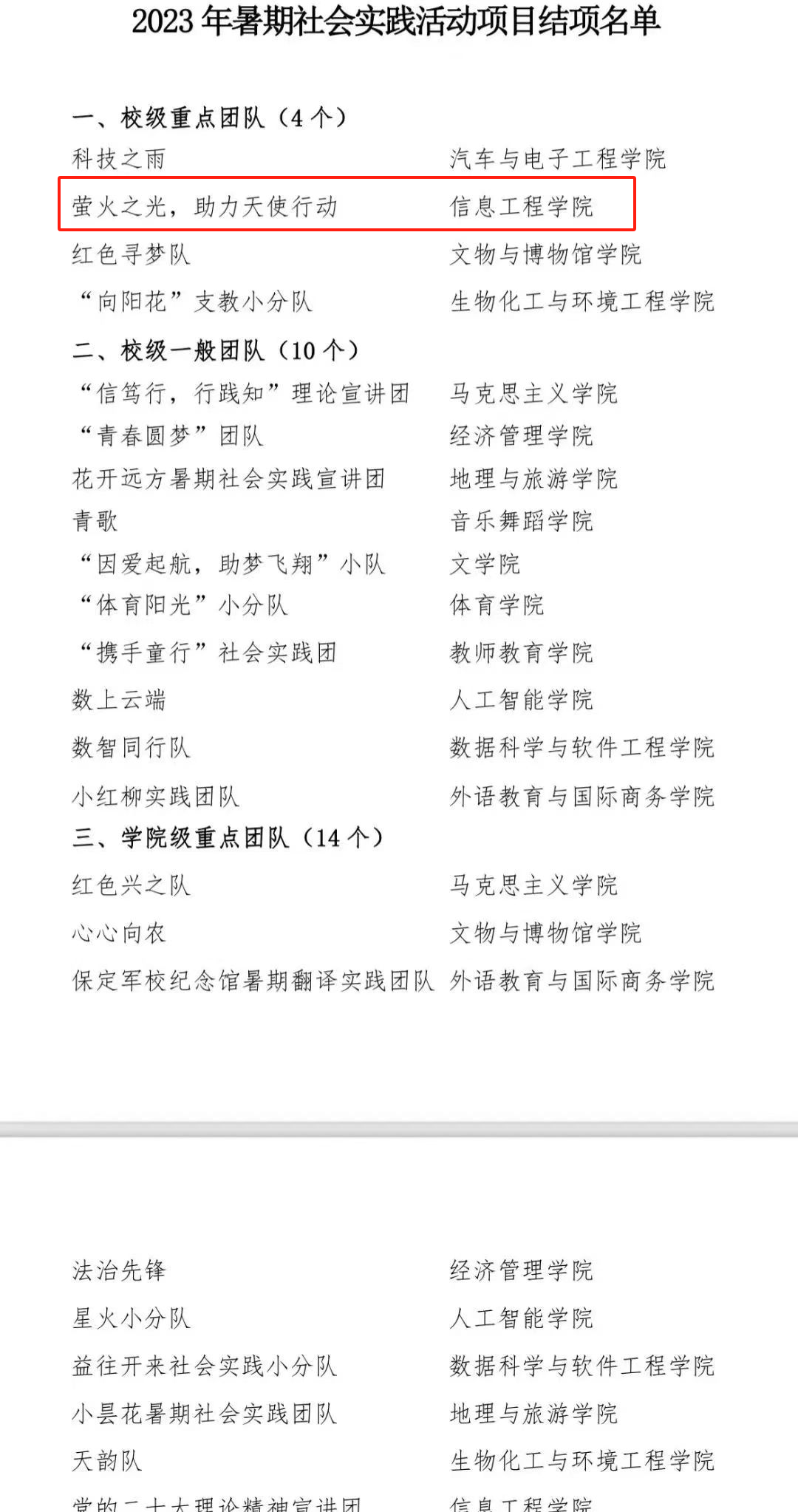 信息工程学院萤火虫团队成立于2018年6月,至今已连续开展志愿服务6年。项目积极响应习近平总书记对新时代青年的号召,以传承和弘扬习近平总书记给我校西部支教毕业生群体代表回信精神为指引,努力践行志愿服务精神,用义务支教、关爱残障儿童的实际行动诠释青年的责任与担当,并通过微博呼吁全社会都关心和爱护“折翼天使”,为残障儿童撑起一片蓝天,为构建和谐社会贡献自己的一份力量。