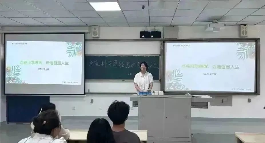 决赛的知识科普大赛环节中,同学们纷纷展示出自己团队精心制作的科普作品,他们从日常生活或生态环境中,找到许多有趣的事物和现象,并用自己所学的专业知识来进行解释,在思考和创作的过程中,感悟科学精神,拓宽知识层面。一张张PPT,一个个视频,让同学们都沉浸在科学知识的海洋中,感受到科学的魅力。