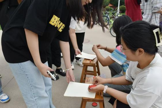 学院团总支提前规划了游园路线,选取了具有代表性的地点作为打卡点,包括图书馆,老校门和回信石:准备了特制的打卡本和历史文化相关的印章,确保每位新生都能留下独特的游园记忆,并安排了学长学姐作为新生提供指引和讲解。