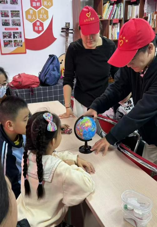 地理与旅游学院青年志愿者分会到合作路社区开展天文知识宣讲志愿服务活动。活动以"地球天体洞悉"为主题,志愿者通过模型演示和互动游戏,讲解了地球结构、海陆分布及天文观测常识。孩子们踊跃提问关于天文、海洋和南北极生命等话题,对地球天文知识有了一定的了解,激发了他们的科学兴趣和探究精神。