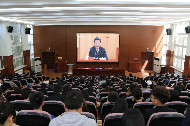 4月30日上午,纪念五四运动100周年大会在人民大会堂举行。校团委组织全校团学骨干280余人集中收看大会直播,认真学习习近平总书记重要讲话精神。