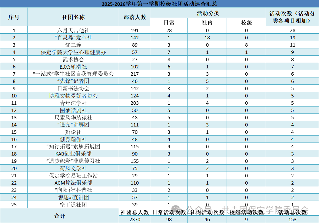 为确保学生社团活动规范有序开展,社团管理部依托 “到梦空间”管理平台,对各学生社团活动进行常态化巡查,重点统计与分析社团活动的次数、主题、参与规模及活动成效等,及时掌握社团动态。