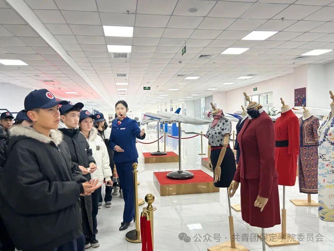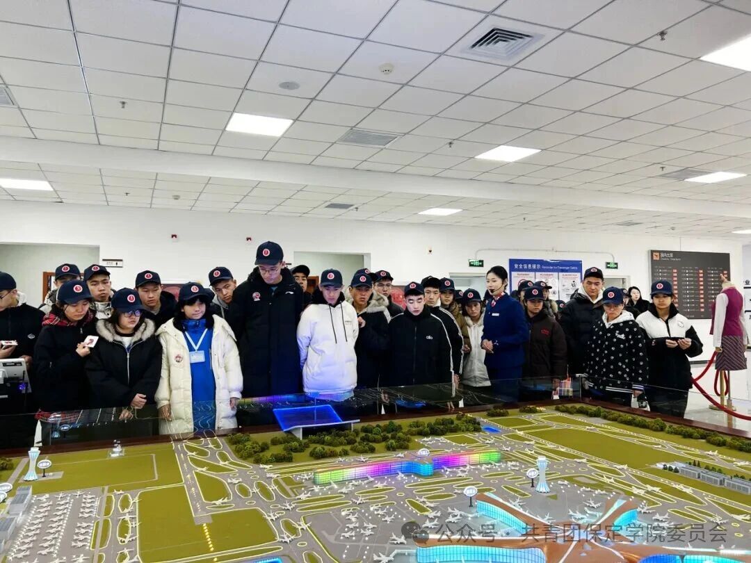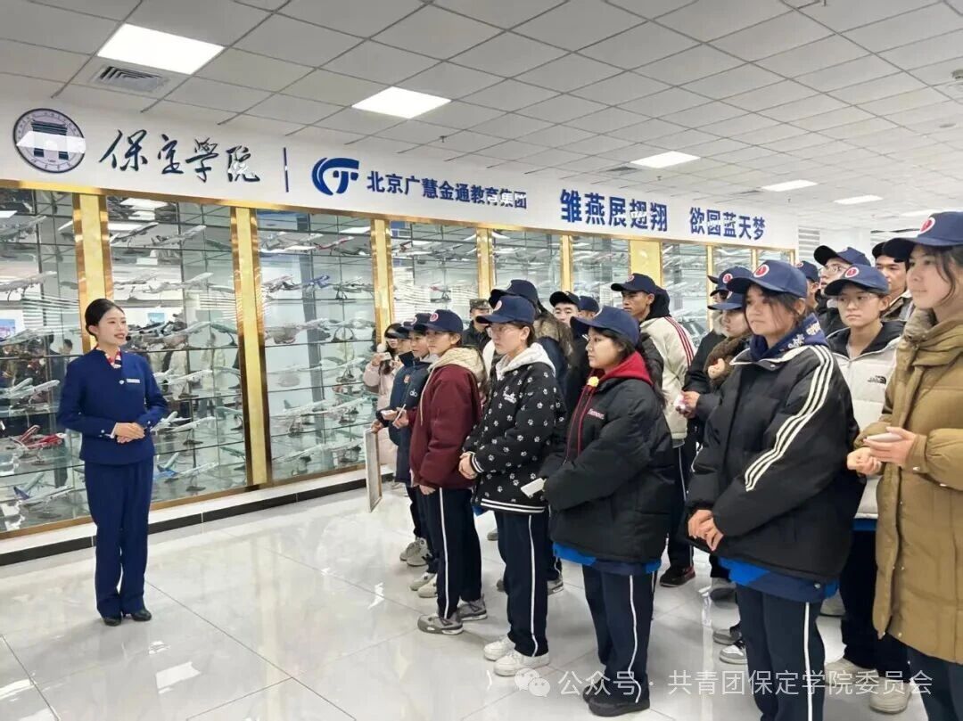 研学团还参观了我校航空专业教学实训基地,在志愿者引导下观摩飞机模型、模拟驾驶舱、聆听北京大兴机场沙盘讲解,直观感受产学研融合育人模式,为未来职业规划提供新视角。