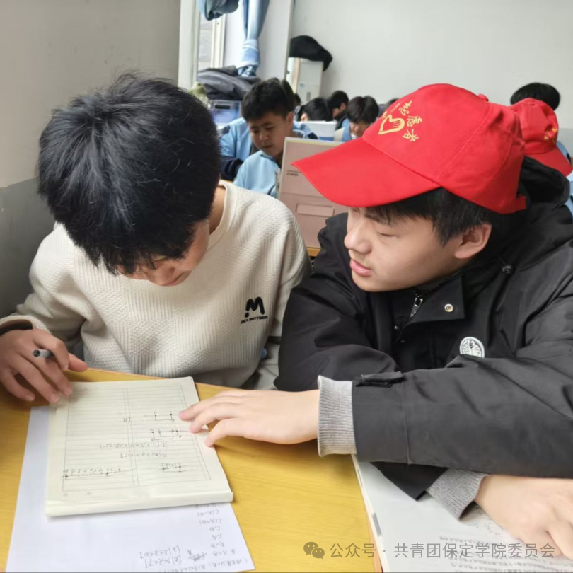 数据科学与软件工程学院团总支组织志愿者到保定动力工程学校,为学生提供定制化学业帮扶。学生和志愿者两两一组,进行一对一数学知识讲解,进一步查漏补缺,并进行交流沟通,激励学生积极面对学习的困难和挑战。