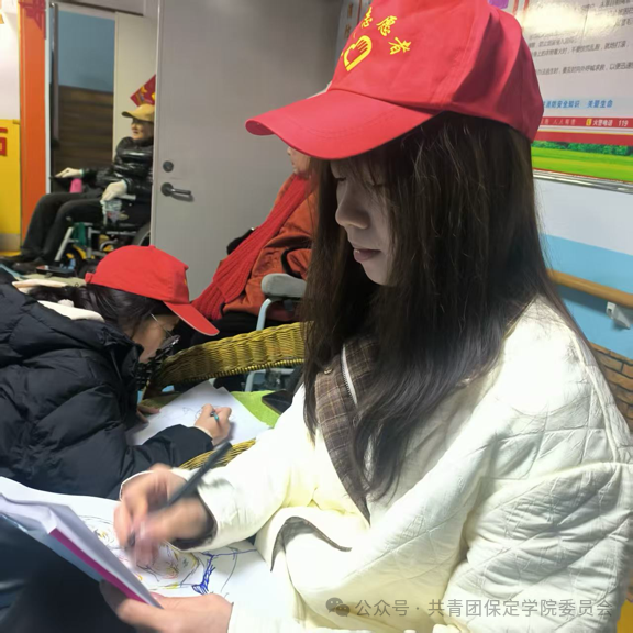 美术与设计学院团总支青年志愿者分会组织志愿者走进泰福春爱心护理院,开展“爱老助老·为老人绘像”志愿服务活动。志愿者们与老人们亲切交流,耐心聆听他们的故事,细致捕捉神态表情与面部细节。
