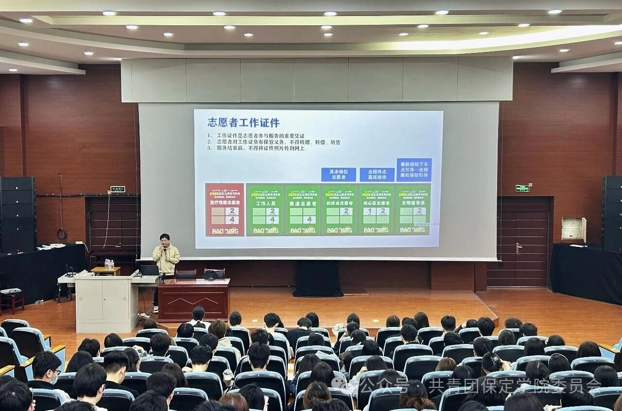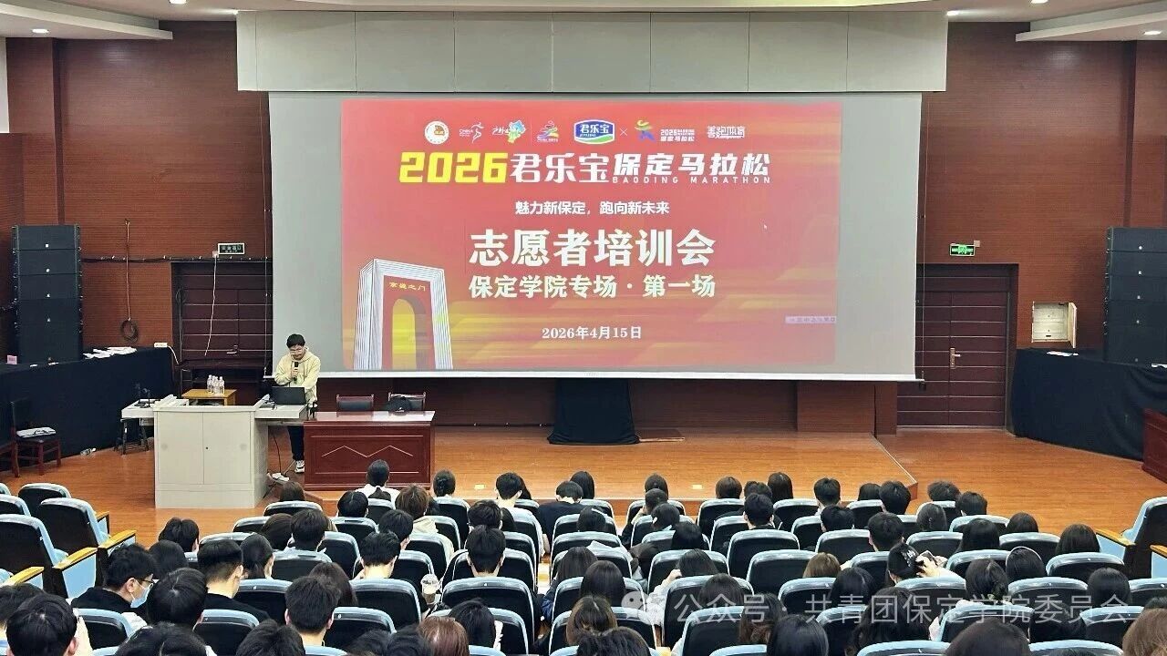 为确保2026君乐宝保定马拉松顺利举行,充分展现我校学子的青春风采与责任担当,4月15日,校团委联合赛事组委会在学习强国放映厅对368名赛事志愿者开展两场专项岗位培训。