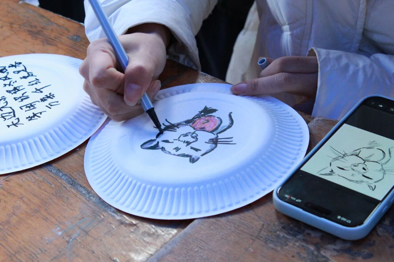 同学们积极参与“指尖生花”手工沉浸式祝福活动,在方寸之间提笔描绘创意纸盘。